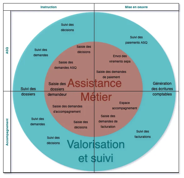 - flux complet d’instruction des dossiers de demandes d’aides (saisie initiale d’une demande, jusqu’à l’évaluation et le suivi du traitement)