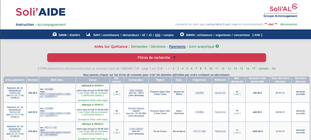 - 3000 utilisateurs l’utilisent quotidiennement (bailleurs instructeurs, bailleurs administrateurs, gestionnaires Soli’AL, conseillers sociaux Soli’AL)