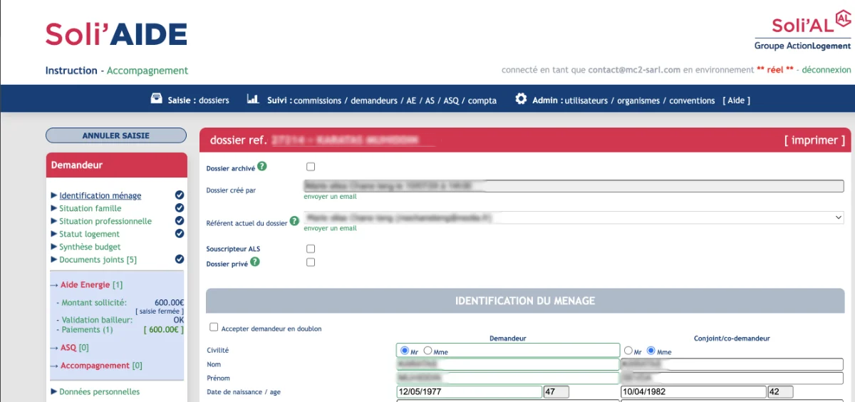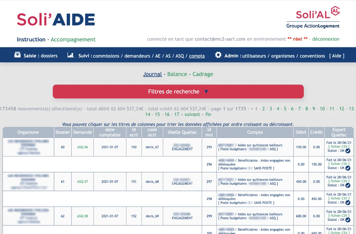 Développement d’une plateforme sécurisée de saisie, suivi et gestion financière et comptable de demandes d’aide financière et mesures d’accompagnement social liées au logement.