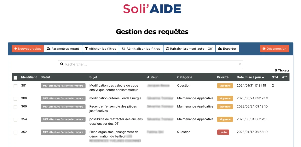 > système de suivi des requêtes et incidents (ticketing)